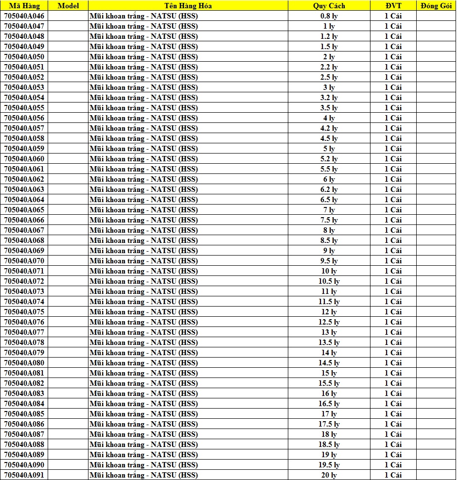 Hãy là người đánh giá đầu tiên “Mũi Khoan Trắng NATSU STS”